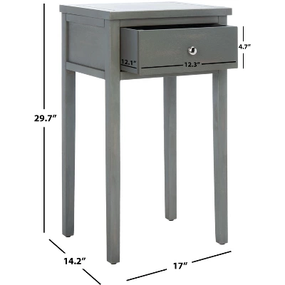 Enhance your bedroom with the Abel night stand. Designed in an elegant ash grey, it brings a touch of style and practicality to your space. Crafted from elm, this night stand offers a perfect blend of durability and aesthetic appeal. The built-in storage drawer is ideal for keeping your essentials close by while maintaining a neat and organized look. Its sleek lines and sophisticated finish make it a versatile piece that complements any decor. Whether next to your bed or placed in a cozy corner, the Abel night stand is a fitting addition to your home furniture collection. Transform your living space with this stylish and functional piece, where form meets function effortlessly.