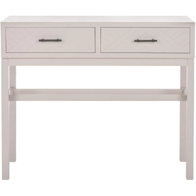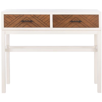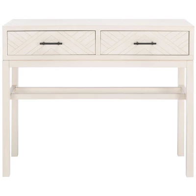 This Ajana Console is a marvelous m�lange of modern minimalism and abstract art. Ajana�s clean lined Parson�s frame is beautifully offset by the herringbone inspired chevron pattern on its two drawers. Designers love Ajana�s d�cor smart distressed white finish.