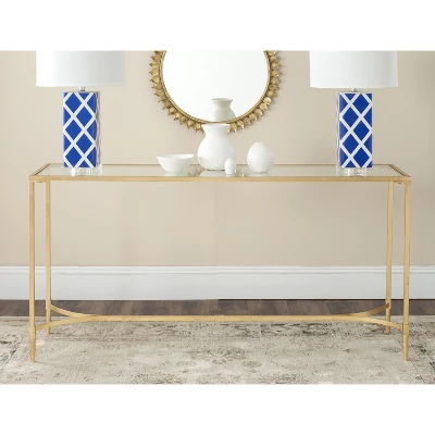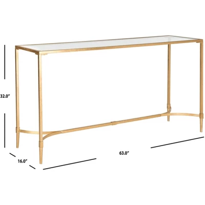 The epitome of sleek sophistication, the Antwan Console brings a designer look to the living room or entry hall. A wonderful example of metal artistry, Antwan is crafted of solid iron with gilt and lacquer finish and tempered glass top.