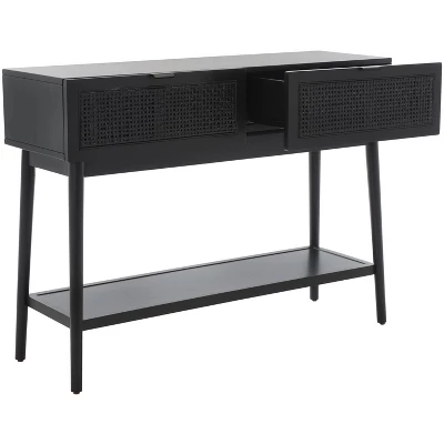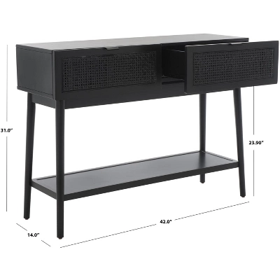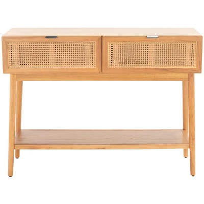 Reimagining Mid-Century chic with a contemporary-coastal update, this beautiful Baisley Console emanates relaxed seaside ambiance. Showcasing two drawers accented with natural rattan webbing and a smooth lower shelf ideal for storage or display, Baisleys retro frame makes a bold style statement.