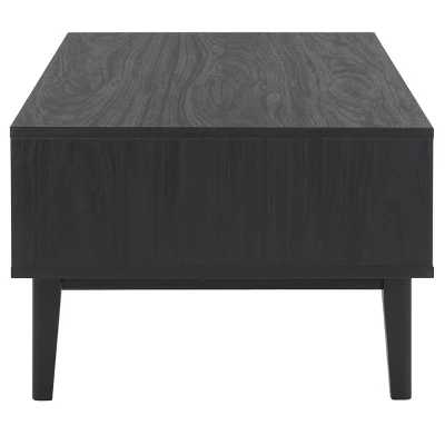 Bring elevated style and functionality to your living space with our stunning Ceu coffee table. A streamlined design and mixed material elegance lend a chic and inviting presence to the coffee table. Its sleek, rectangular tabletop and tapered legs vouch for a modern appeal. It highlights the rich grains of wood to create a stunning contrast with the intricate gold metal work to offer a refined touch of luxury. Sophisticated and detail-rich, our coffee table features two sliding cabinets to organize and keep your essentials within easy reach.