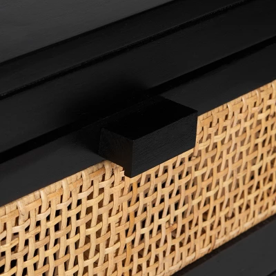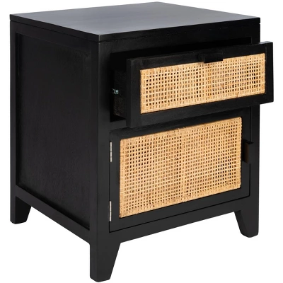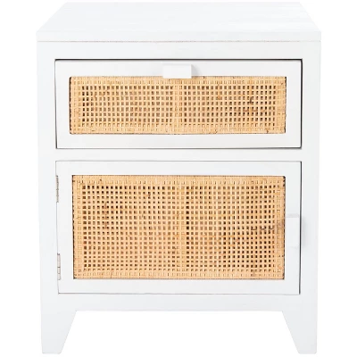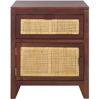 Bring relaxed coastal ambiance to your decor with this Devon Nightstand. Devons door and drawer are given soothing tropical flair with natural rattan, pairing beautifully with its matching natural finished mindi wood frame. Sleek bar pulls elevate the look, making it perfect in any bedroom.