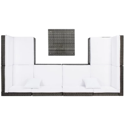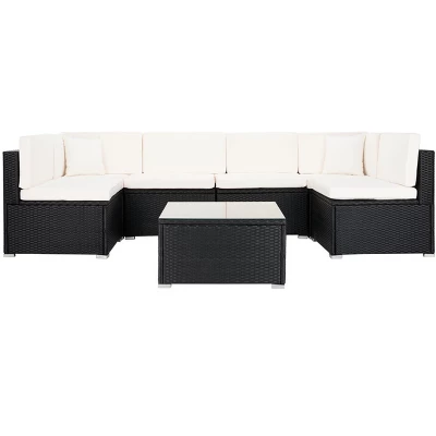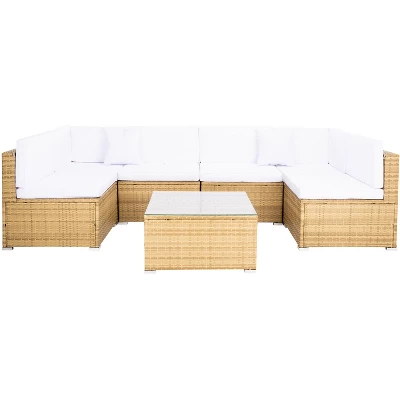 - Set includes: 4 Armless Sectional Pieces, 2 Corner Sectional Pieces, 1 Coffee Table, Seat and Back Cushions, Accent Pillows