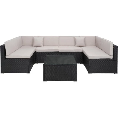 - Patio Sectional Sofa Set crafted with Steel, Foam, All-Weather Wicker, Polyester