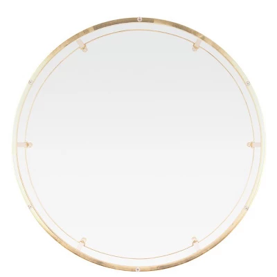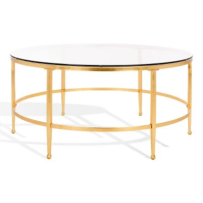 Divinely sophisticated in its understated elegance, this Edmund Cocktail Table is the perfect piece to balance any living room. The antique gold gilt finish on Edmunds open circular frame adds a glimmering touch to surrounding decor, and a clear glass top enhances its airy appeal. Care Instructions: METAL CARE: Wipe spills immediately. Maintain with regular dusting. Clean with mild soap and water. Dry thoroughly and do not use a brass cleaner. GLASS CARE: Dust with a soft, dry cloth. Do not use abrasive cleaner. To clean glass, spray a small amount of glass cleaner onto a lint free cloth and wipe clean.