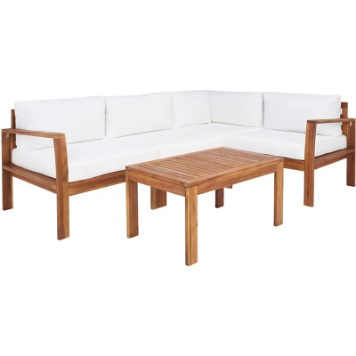 - Patio Sectional Sofa Set crafted with Acacia Wood, Foam, Polyester