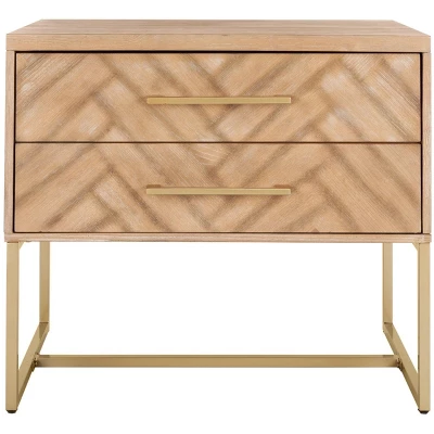 Alive with natural beauty and a dynamic modern pattern, this contemporary nightstand brings elan to any bedroom. Designed with an oak finish and substantial brass metal hardware and legs, its generous two drawers make it as functional as it is stylish.