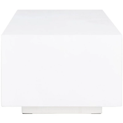 This Ezro Coffee Table embodies all the best of sleek contemporary sculpture, making a monumental design statement for the modern home. Ezro’s clean white faux concrete finish emanates a luxurious penthouse aura that enlivens any room with high-fashion chic.