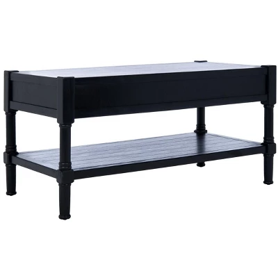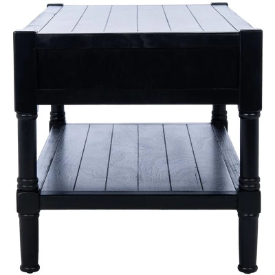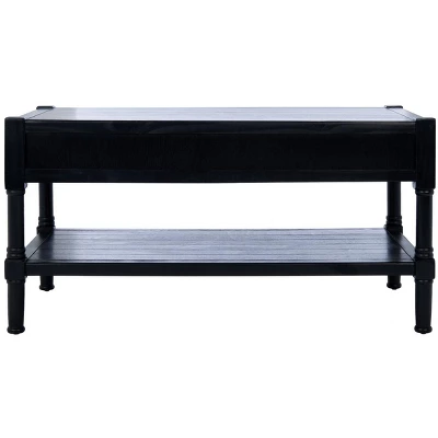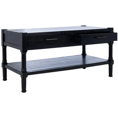 A practical and stylish addition to the living room, this Filbert Coffee Table beautifully blends minimalist function with traditional form. A lower shelf and two drawers provide much needed storage in small space living areas, and a sleek black finish complements any room’s color palette.