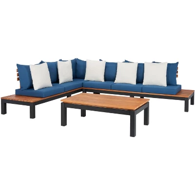 - Patio Sectional Sofa Set crafted with Acacia Wood, Foam, Polyester