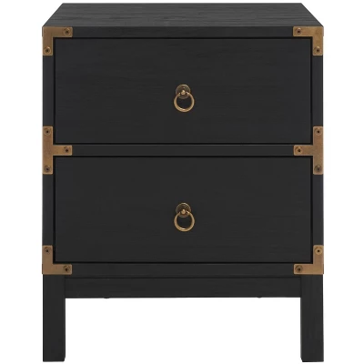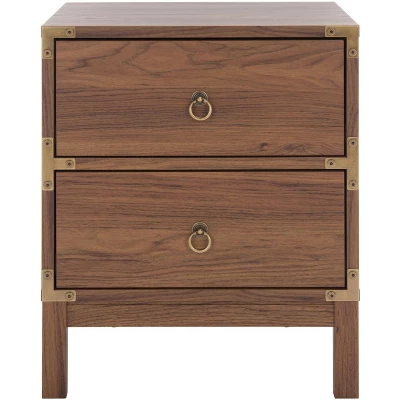 Embrace a classy, elegant, and versatile addition to your bedside with our Galio nightstand. Thoughtfully streamlined, the crisp and clean lines of our nightstand boast timeless aesthetics. It is gracefully perched and adorns a rich walnut veneer to enliven your bedroom. Being inspired by the effortless beauty of vintage style, our nightstand is finished off with ring pulls and gold hardware on the edges. An elegant and timeless addition, the nightstand features two drawers to store and organize all your essentials.
