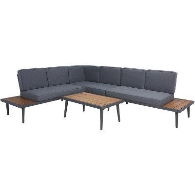 - Patio Sectional Sofa Set crafted with Acacia Wood, Foam, Polyester