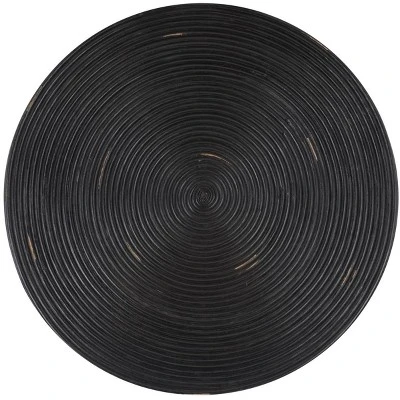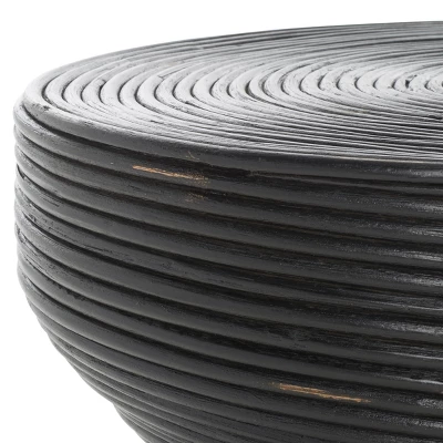 Uplift any corner with the charm and grace of our Heimdall round coffee table. Natural rattan receives a sleek and sculptural update in our stunning accent table. Its beautiful hourglass-inspired shape is accentuated with horizontal bands of rattan. Creating a stunning ribbed effect, our coffee table lends a dose of visual interest to any corner. It is finished off with a distressed black finish to serve as a charming and versatile companion to your sofa or armchair.
