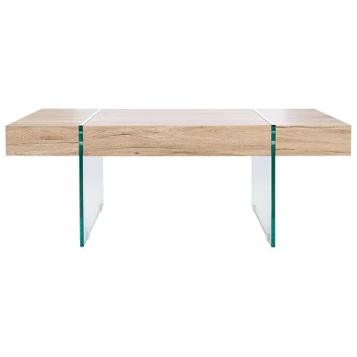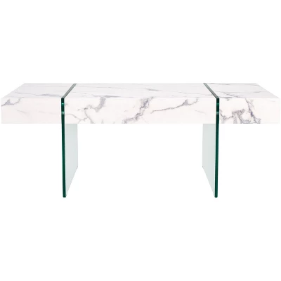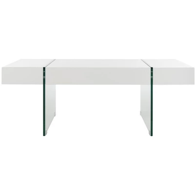 A juxtaposition of ethereal and substantial style, this rectangular glass leg modern coffee table makes an artistic statement. Inspired by contemporary architecture, its translucent glass and sleek finish are ideal for the minimalist living room. Care Instructions: Dust regularly with a soft, dry cloth. Never use oiled or treated cloths on lacquered finishes. Some finishes can be wiped with a damp (not wet) cloth, followed at once by rubbing with a dry cloth to remove fingerprints and smudges. For persistent spots, gently clean with a soft cloth and a solution of water and mild soap, make sure to wipe dry. Use adhesive felt pads, coasters and placemats to protect your furniture.