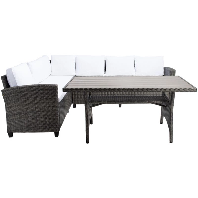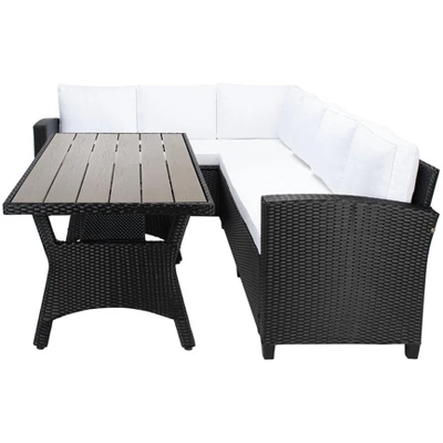 - Patio Sectional Sofa Set crafted with Steel, Foam, All-Weather Wicker, Polyester