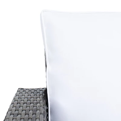 Introducing the Jovita 3PC Corner Set in stylish Black and White. This striking ensemble is designed to transform any outdoor space into a contemporary oasis. Crafted from durable Poly Wood and PE Rattan, it combines both elegance and functionality. The set features plush foam and fabric cushions in a chic black and white color scheme that perfectly complements the sleek lines of the furniture. Whether you are entertaining guests or enjoying a quiet evening under the stars, this corner set offers comfort and a modern touch to your patio or garden. Its versatile design allows for easy customization, ensuring it fits perfectly in any corner of your outdoor area. Embrace the ideal blend of style and comfort with the Jovita 3PC Corner Set. Perfect for those who appreciate modern design and outdoor leisure, this set is your go-to for creating an inviting and sophisticated atmosphere. Refresh your exterior living space today with Jovita.