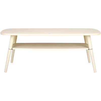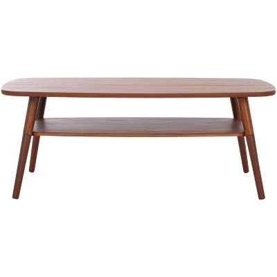Uplift any corner with the modern charm and rustic appeal of our Karou coffee table. Our mid-century-inspired coffee table enlivens your space with its effortless style and warm elevating tone. Its rectangular tabletop is finished off with rounded edges to attain a soft and inviting look. Tapered legs complete the sleek and modern profile of the coffee table. It showcases the organic grains of wood. Our coffee table includes a lower shelf to provide ample space for both display and storage.
