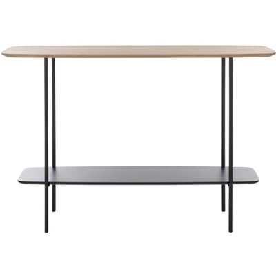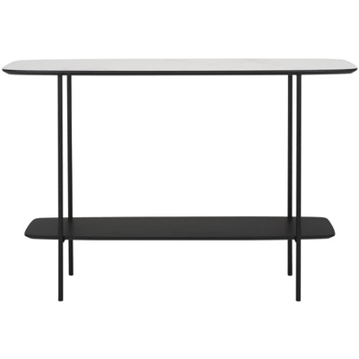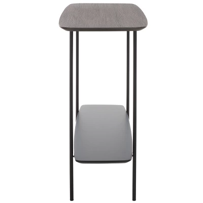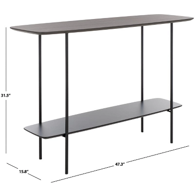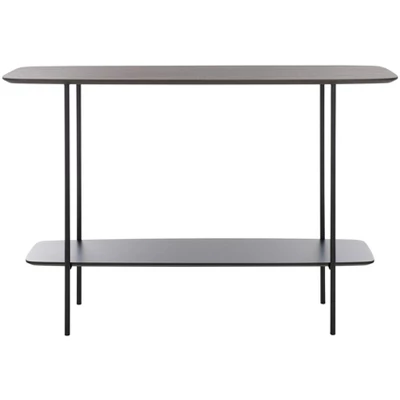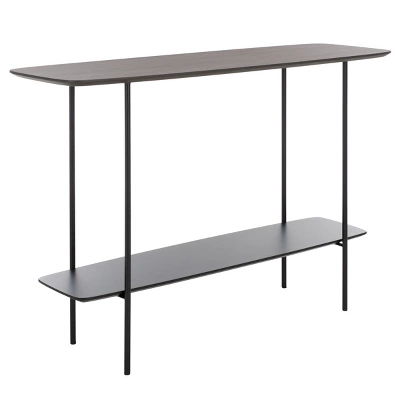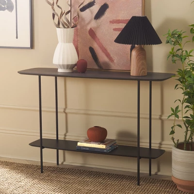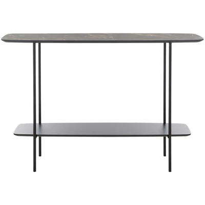Update any corner with the modern charm and grace of our Kayleigh coffee table. The clean and refined profile of the console is updated with an elegant mix of materials. Its elongated profile is completed with curved edges for a sleek and inviting look. The tabletop and shelf showcase a dark sandstone finish to add polish and depth to any room. Completed with slender black metal legs, our console table offers a sleek and practical touch to your entryway, living space, or dining. It includes a shelf to maximize both display and storage space.