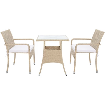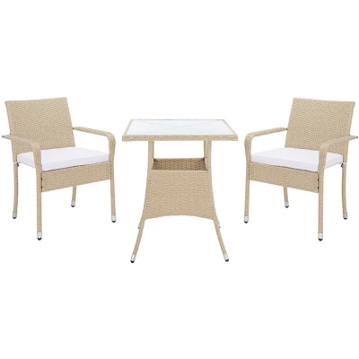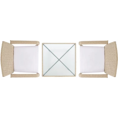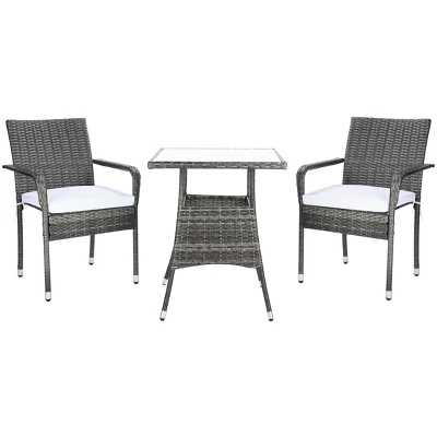 - Patio Bistro Set crafted with Polyester, All-Weather Wicker, Steel, Glass