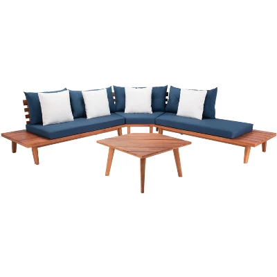 - Patio Sectional Sofa Set crafted with Acacia Wood, Foam, Polyester