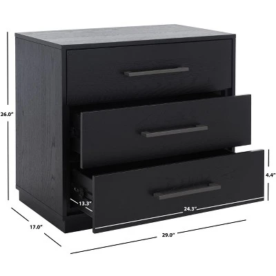 Introducing the Mallory three drawer nightstand in a rich dark brown finish, designed to bring both style and functionality to your bedroom space. Crafted from a combination of mdf, oak veneer, rubberwood, plywood, and hardwood, this piece merges natural beauty with practical design. Its spacious drawers provide ample storage for your bedside essentials, while the warm tone enhances any decor. Enjoy the smooth finish and sturdy construction that promises to complement your room with a touch of elegance. Perfectly sized to fit snugly beside your bed, the Mallory nightstand offers practicality without sacrificing style. Elevate your living space with a piece that speaks the language of comfort and convenience.