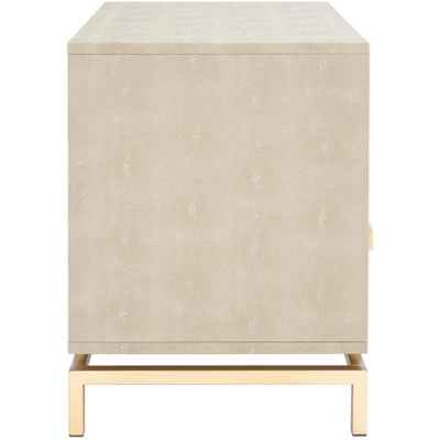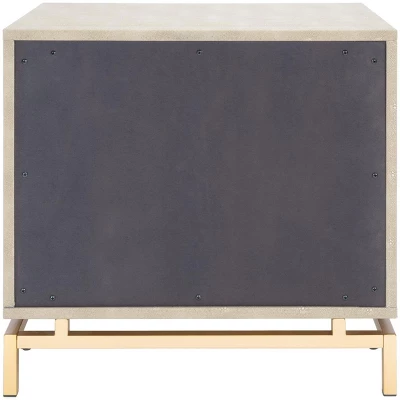 This Meilana Nightstand translates Art Deco design into the language of modern glamour, making it an unmistakable style statement. Meilanas raised open base and brass accent details give its neutral light taupe finish a decidedly lavish look.