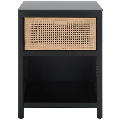 Give a modern and breezy update to your bedroom with our Miya nightstand. Our sleek and streamlined nightstand stands out with a rich textural appeal. A beautiful rattan mesh is juxtaposed against a luscious natural veneer to serve as a warm and welcoming addition to your bedside. Its minimalistic profile evokes relaxed refinement to sit easily in any modern bedroom. A drawer and open shelf can organize all your nighttime essentials to keep the bedroom organized at all times.