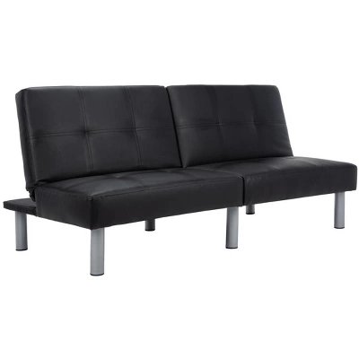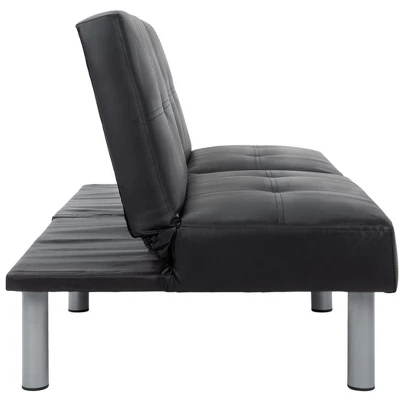This versatile foldable futon bed is a stylish and functional piece that effortlessly blends fashion with practicality. Its clean lines and sleek design create a sophisticated and visually appealing aesthetic, while its posh tufts and durable PVC upholstery offer both comfort and style. The bed’s steel legs add a touch of warmth and beauty, complementing a variety of interior styles. Whether you’re using it as a comfortable sofa or a convenient bed, this foldable futon bed is sure to elevate your living space and provide a versatile and stylish seating or sleeping solution.