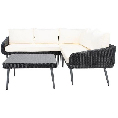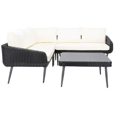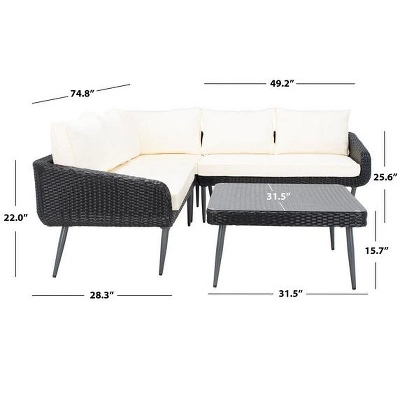 The classic tuxedo style sofa is given a modern coastal upgrade in this Onri 3 Piece Sofa Set. Woven black rattan and soft beige cushions highlight Onris smooth curves and clean lines, featuring two sofas that can be arranged as a sectional and one glass topped coffee table, making it perfect for outdoor entertaining.