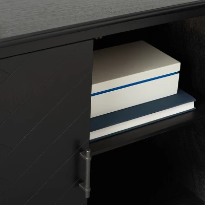 Ideal for today�s classic contemporary d�cor, this Peyton Sideboard organizes your living space in style. The oversized herringbone pattern on its two doors gives a modern touch to its timeless silhouette, while a distressed white finish blends seamlessly with any room�s color scheme.