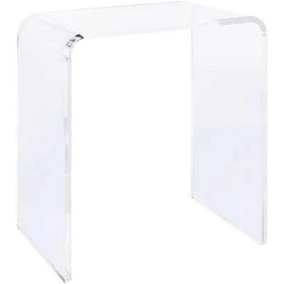 An elegant expression of upscale minimalism, this Pryor Side Table abounds with airy depth and dimension. PryorÕs crystal clear acrylic frame is ideal for visually opening a space in its understated yet eye-catching silhouette. Care Instructions: Dust regularly with a soft, dry cloth. Never use oiled or treated cloths on lacquered finishes. Some finishes can be wiped with a damp (not wet) cloth, followed at once by rubbing with a dry cloth to remove fingerprints and smudges. For persistent spots, gently clean with a soft cloth and a solution of water and mild soap, make sure to wipe dry. Use adhesive felt pads, coasters and placemats to protect your furniture.