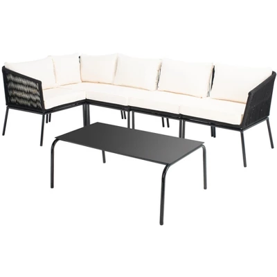- Patio Sectional Sofa Set crafted with Steel, Foam, Polyester