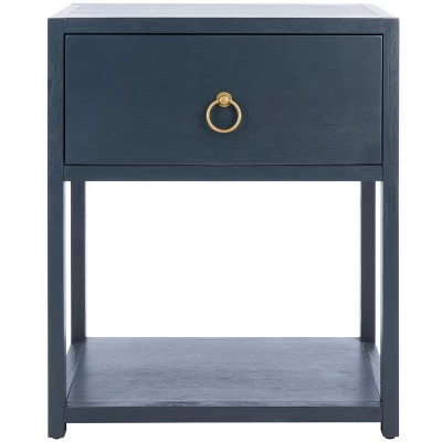 Achieve a truly curated look in your bedroom with the effortlessly stylish Yudi Nightstand, designed for today’s discerning homeowner. Its classic silhouette is given a contemporary, chic update with a bold and sophisticated navy finish. Crafted from durable acacia wood, the Yudi features a striking gold pull that gleams against the deep blue, adding a touch of glamour. A spacious top drawer neatly stores nighttime essentials, while the open bottom shelf offers the perfect stage for showcasing your favorite books, magazines, or decorative accessories, blending flawless function with high-end fashion.
