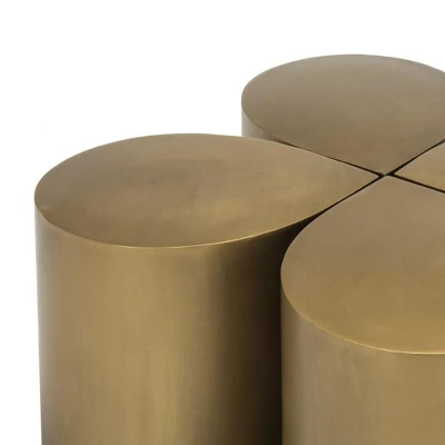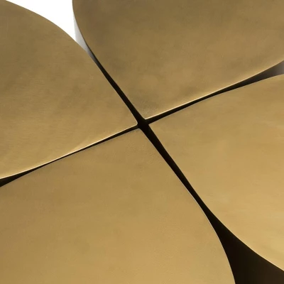 Alive and outspoken, the monumental presence of this contemporary coffee table illuminates the art of design. Masterfully crafted, its sculpted iron construction features an antique brass finish, lending each sinuous, ample curve deluxe shimmer and shine. Care Instructions: Dust regularly with a soft, dry cloth. Never use oiled or treated cloths on lacquered finishes. Some finishes can be wiped with a damp (not wet) cloth, followed at once by rubbing with a dry cloth to remove fingerprints and smudges. For persistent spots, gently clean with a soft cloth and a solution of water and mild soap, make sure to wipe dry. Use adhesive felt pads, coasters and placemats to protect your furniture.