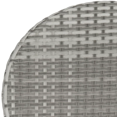 The fun creative design of the grey Valdez Stacking Side Chair brings a new level of style to indoor and outdoor seating. This sturdy, durable chair with modern round back is sold in sets of two and crafted with easy care, weather resistant PE wicker and aluminum. Care Instructions: Store outdoor furniture indoors or cover well when not in use. Remove wooden furniture from standing water. Dust regularly with small brush or vacuum. Spills should be taken care of immediately before they harden or stain with a slightly dampened sponge. Do not use bleach solutions.