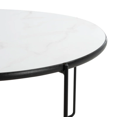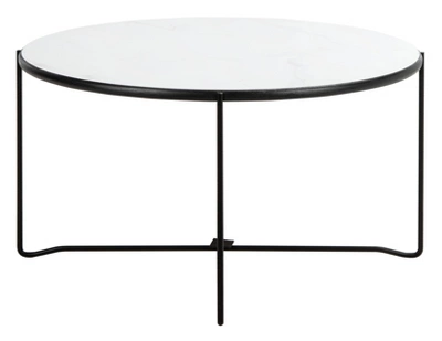 Give your living room captivating cosmopolitan elegance with this Wrena Coffee Table. Black hairpin-inspired legs infuse Wrena’s smooth faux white marble top with a hint of Mid-Century chic, making it perfect for today’s contemporary eclectic interiors. Care Instructions: Dust regularly with a soft, dry cloth. Never use oiled or treated cloths on lacquered finishes. Some finishes can be wiped with a damp (not wet) cloth, followed at once by rubbing with a dry cloth to remove fingerprints and smudges. For persistent spots, gently clean with a soft cloth and a solution of water and mild soap, make sure to wipe dry. Use adhesive felt pads, coasters and placemats to protect your furniture..